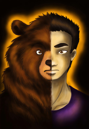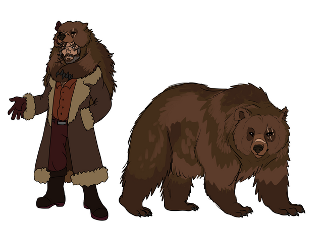 Angus's werebear design, the Fantasy AU, and art (C) creativeHellstorm