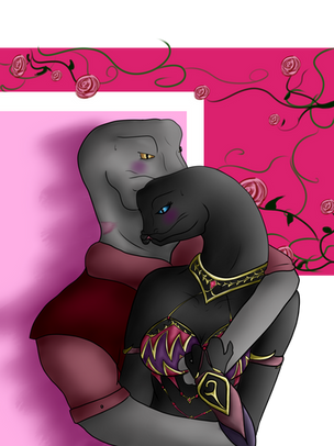 Click to enlarge the eliteness!!Yup! I draw elites now!! This is two of my OC's, Rashwa (the female) and Nobu (the male). Don't they look cute together ^. .^