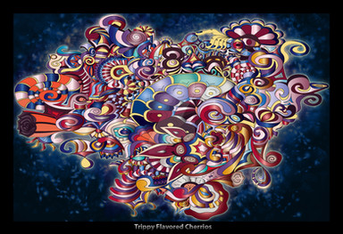 Hey that's pretty wild. Are those m&ms in the sky? With the happy faces, umbrellas and stuff? Cool! It has, for me, some of that delightful surreal wackiness in the spirit of the "Yellow Submarine" movie.