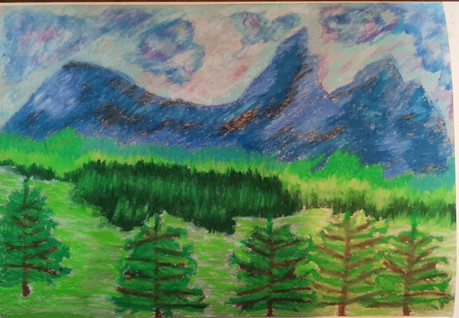 A landscape drawing I did in AP art with oil pastels.art(c)