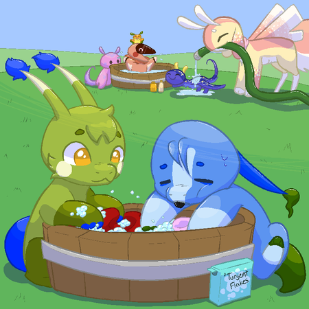 ○ After dating for nearly a year, Blueberry and Boba get a little carried away and she ends up eggbound. The two of them tell Mushroom and prepare the spare room for the new baby. He dotes on her the whole time she's eggbound. After about 4 months, Boba lays not one egg, but two. This shocks both of them, but she feels hopeful for the eggs' future