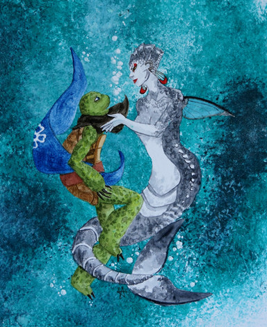 It's too late for mermay but this was my first mermay picture of Raph and Lana and I redrew it.I decided to change up the original background though.