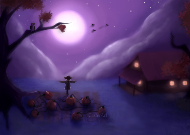 A calm October breeze swept across the crops of a foggy farmstead. Not everything Halloween related needed to be tense or creepy.Created in autodesk sketchbook on a Galaxy Tab A