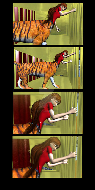 Viki is now a horse, of course.Her hair drops off her head like a loose wig and falls to the floor.