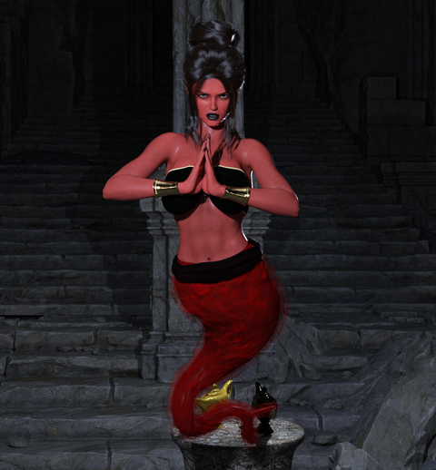 Daz 3d Studio 4.10 Pro: {Gen 2, Magical objects-amphora, Persian pants and top, Aikanaro pool, walls, pillars, Sally-mae hair}GIMP: