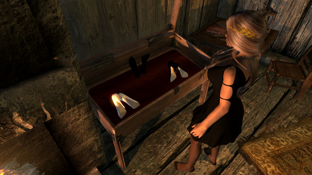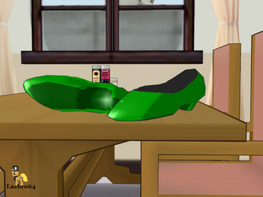 After a bit of snooping she manages to find her sister's shoe closet. Eager to be rid of her eyesore shoes, she tries several pairs on for fit and comfort. Little does she know that these shoes have special properties...