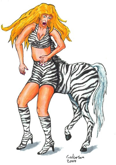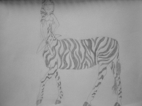 A zebra taur transformation. A woman changed into a zebra taur.Media: Colored pencils, prisma-color markers, graphite sketch, printer paper.