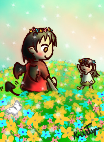 This started as another sketch I had to do for art class. I ended up putting the person who was posing insde the class room in an outdoor background, and that is where I got the title. I was playing around with color patterns, that's how I ended up with two versions of the same picture, I couldn't decide which I liked better, so I put both up side by side, so you can see the difference.Related content