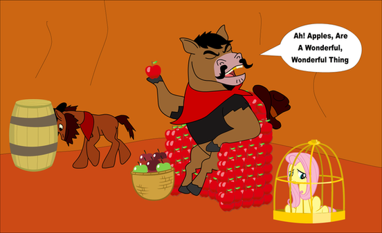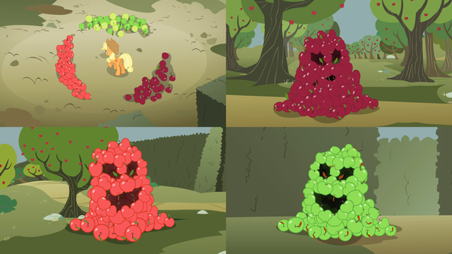 Bad Apple is the main antagonist of the "Night of the Living Apple" comics.In regards to the aforementioned comics, I personally don't hold anything against them. However, they were hardly what I'd call great standouts either. Aside from taking a great advantage of Fluttershy still having a bit of Bat-Pony in her as shown in the end of "Bats!", and the rest of the Main Six becoming Bat-Ponies thanks to Twilight's spell, the overall story was one that I had a hard time getting engaged in and wrapping my head around. Considering the reference the story made to the Nightmare Moon comics at the beginning of the first issue, the contradiction of Luna and Celestia fighting in space instead of in the Castle of the Two Sisters as shown in "Princess Twilight Sparkle", and Discord bringing apples to life in "The Big Mac Question", hardly anything about the story neither aged well or aligned with the show canon.