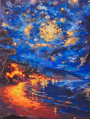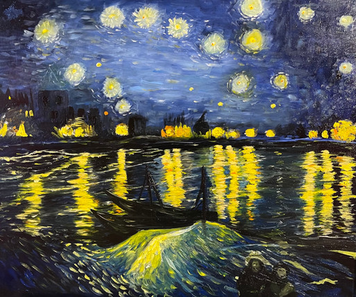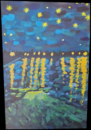 #acrylic #portrait #traditionalart #sky #black #blue #brown #gray #night #nighttime #paintbynumber #painting #vincentvangogh #white #yellow #starrynightontherhone