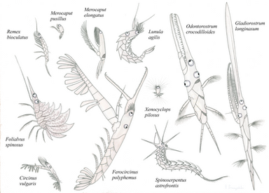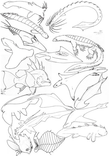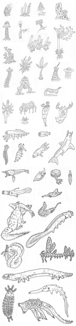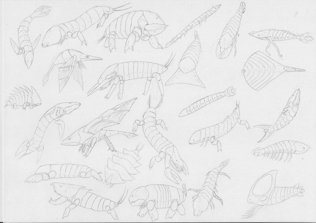I like the + shaped one in the upper left corner, and the isopod-y looking one immediately below it, and the six-limbed critter to its right. You've got a great menagerie of critters here.