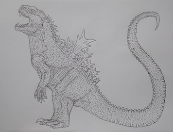 Godzilla is a colossal reptilian-like creature that belongs to a prehistoric superspecies of Titans, the original and dominant lifeforms of the planet. He is estimated to be over 250 million years old, having survived multiple extinction events by feeding on the planet’s natural geothermal radiation in the depths of the ocean. He has a height of about 120 meters and a weight of about 100,000 tons, making him one of the largest and heaviest Titans known. He has a dark gray scaly skin, a long muscular tail, dorsal plates that glow blue when he charges his atomic breath, and yellow eyes that reflect his intelligence and ancient wisdom. He is a territorial and solitary animal, but also has a symbiotic relationship with Mothra, the Queen of the Monsters. He is the alpha predator of his ecosystem and will defend his territory and the balance of nature from any threats, such as the parasitic MUTOs, the alien King Ghidorah, or the mechanical Mechagodzilla. He is revered by many human cultures as the King of the Monsters, a god-like being that represents the power and majesty of nature.