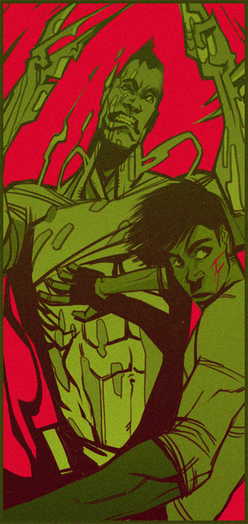 Intense! The eyes really capture you, but the blood drops pull it together.