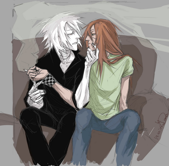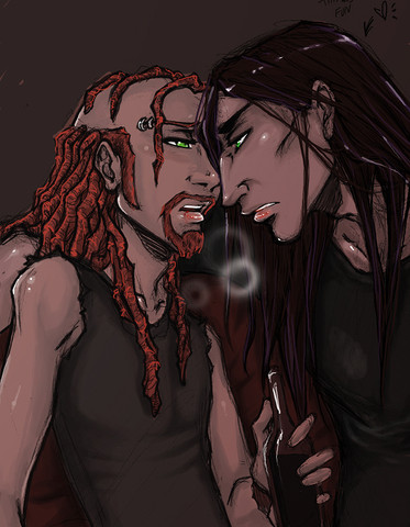 ...just a small pic for the fic my friend wrote for me not long ago :}my OCs!