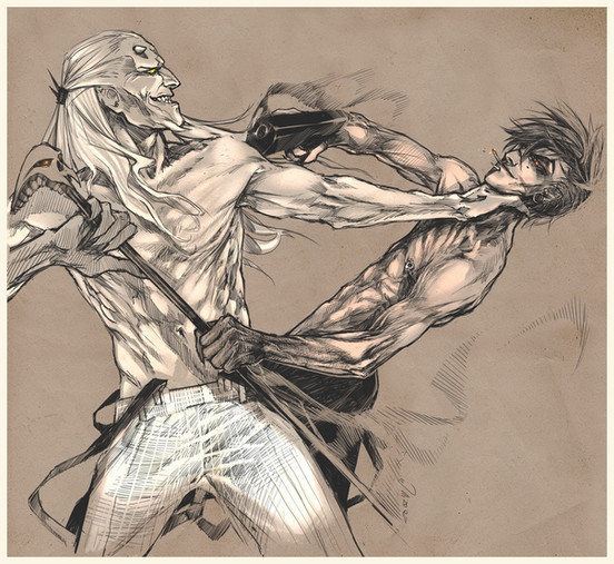 lol well I'm sure you'd like it and I know the similarities are just coincidence. But you're very good at muscle structure which I envy, I tend to draw really well when I draw it loose and sketchy, but when I tighten up on it it ends up getting too lifeless. T.T But I really enjoy your style and how it's constructed, it's similar to my style actually. I just don't use as many lines.