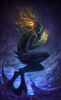 Это чудесный Левиафан.Сразу вспомнился Чужой из Dishonored.В Вашем Левиафане мне нравятся волосы,как космос и эти светящиеся точки по всему его телу.Вдохновения Вам!