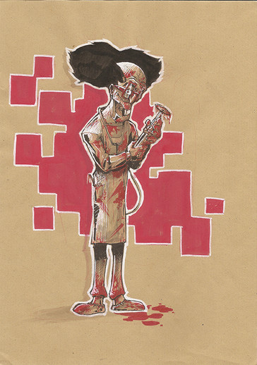 Brush and halftone along with FW red ink. More craziness can be found on our Twitter feed: twitter.com/creatureboxRelated content