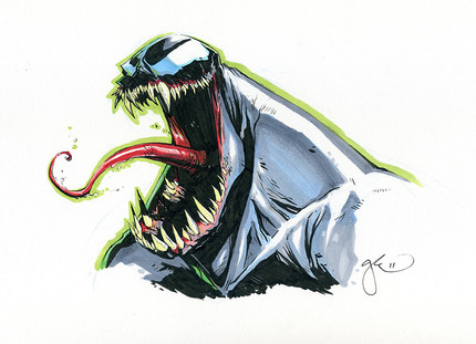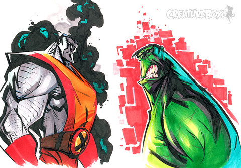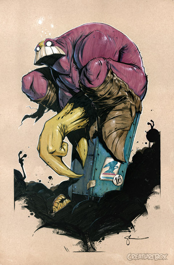 Oh geez, another screaming head! We definitely have some anger management issues at the 'Box. This will be one of the pieces we'll be contributing to the HeroesCon auction this weekend. Brush and Copics on cardstock.Should be a wild and crazy time--stop by and say hi if you're in the area. We'll be the guys pestering *skottieyoung all weekend. Table AA-213!