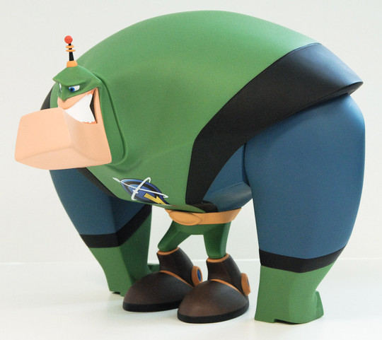 Sometimes you've got to go with the primal side. Ultimately Qwark is a big goofball so we wanted to explore that angle. Also, with vinyls, a lot goes into making sure the character can stand and not fall over. Hi hands helped a lot with balance.