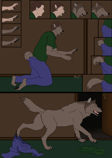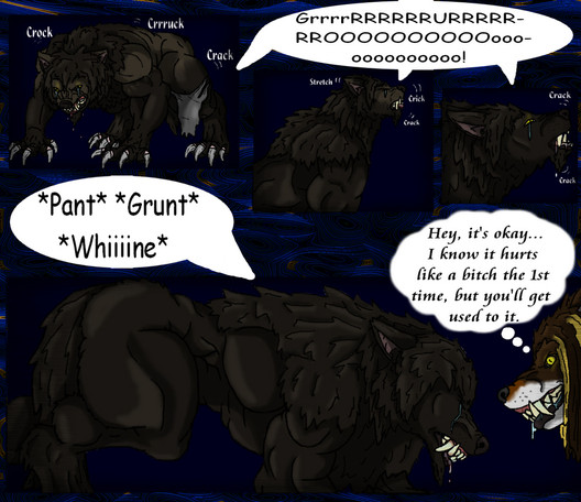 "Ahh!!! The...pain," she said then a popping sound was ushered. A feralistic muzzle was pushed out from her face. Pigmentation began to change as dark fur began to sprout from her face and body. Clothes began to be torn off as everything began changing.