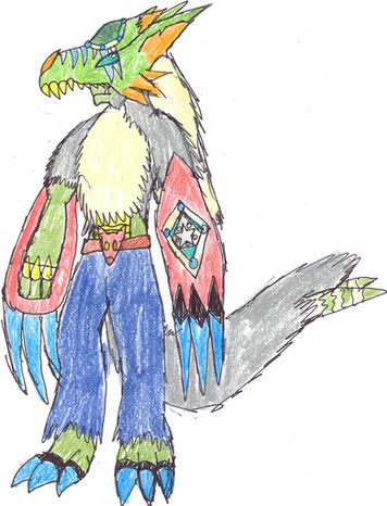The champion form of Gatormon, Maskimon! A lord of the rivers, he protects the weak. Like his rookie form, he also wears the "X" arm piece. He is also a very good fighter, especially with his Ambush Punch!