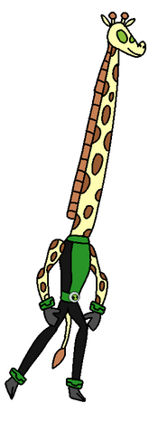Powers/abilities: Giraffescraper's most notable ability is his long, telescopic neck. Consisting of twenty-one individual vertebrae, the bones are able to snuggly slide into one another when held at rest and then suddenly extend due to a complex system of fluid-filled rods that hold them in place. Using his long neck, Giraffescraper can get into places that would otherwise be far out of reach.