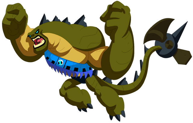 Weaknesses: In order to offset the potential length of his neck, Giraffescraper's body is bottom-heavy and is thus vulnerable to being knocked down. If he tries to get up while his neck is extended, he will be unable to do so due to his center of gravity being displaced.