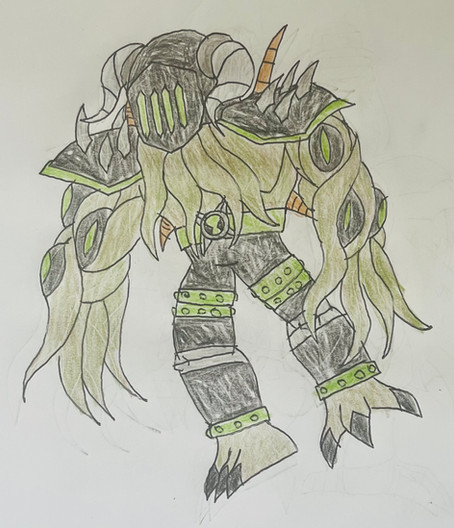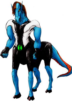 Here's my first Omnitrix alien, Phobos, back and better than ever. After taking up the offer of insanedude24 's request drawings (which are no longer available at the moment, so don't go pestering them!) and seeing how incredible he could become, I decided it was high time my own sketch of my creation needed a visual update . . . unfortunately, there's not a lot to go off of, so a bit of what you see here was inspired by the drawing that insanedude24 so kindly made for me. Keep in mind that while I had the original idea, the visual update is all practically based off of insanedude24's drawing; I give him full credit where credit is due.Anyway, this guy original debuts in a fanfiction story I made over on Fanfiction.net and, while admittedly paling in comparison to some of my current works, was still rather successful for a Ben 10/Monster High harem crossover story. If you don't believe, go on over and it yourself!