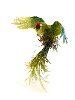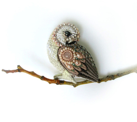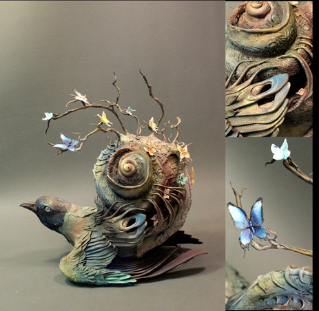 #barredowl #bird #clay #feather #glasseyes #green #leaf #owl #plant #polymer #rainforest #surreal #vine #wings #creaturesfromel #s #ellenjewett #sculpture
