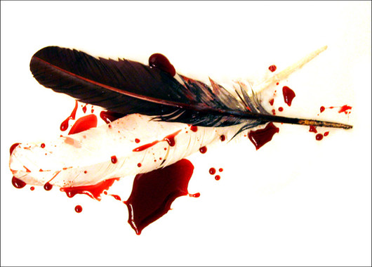 The blood doesn't quite look bloody enough. Like, there's water in it, or it's really some kind of red fruit juice. But, I still like this picture a lot. Killer job.