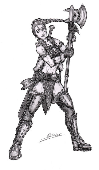 Lethe, female barbarian. Commission for .I will take a break for commissions now. The new Wayfinder issue will be asking for artists soon, and I do want to dedicate my -scarce- drawing time to it. Hopefully, some more slots will be open when my pics for the fanzine are finished.