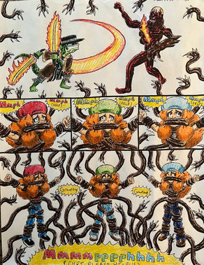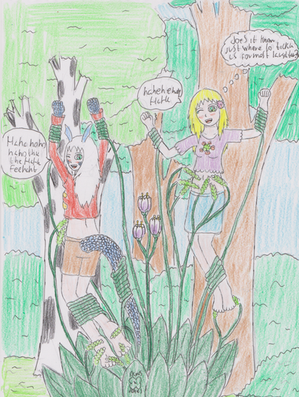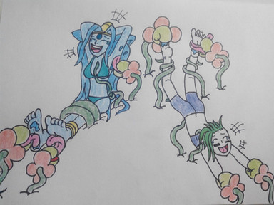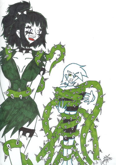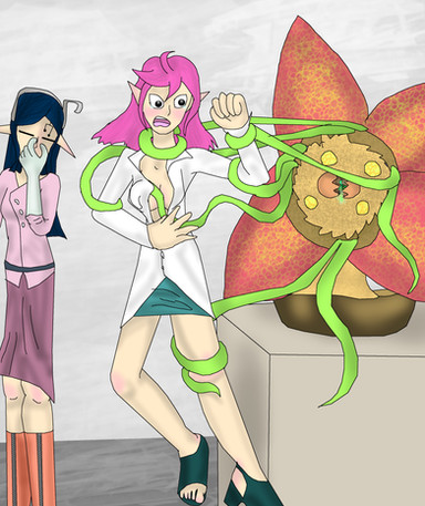 "N-nice roses!" said one of the elves nervously. One of the other elves glared at Erika as she used her arm to wrap a tendril around the last Elf that was attempting to hit her.