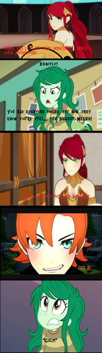 Read The Arrogance of Man here: www.fimfiction.net/story/22083…"Damn it!" cursed one of the Elves. He ran toward Erika, sending a barrage of punches and kicks. Erika blocked the attacks, waiting for her opponent to tire. Before the Elf could tire, Erika felt her back burn. She cried out in pain as her shoulder was struck by a magic bolt. She turns and finds the rest of the elves with their hands engulfed in colorful auras. She tensed as she saw the magic bolts fly from their hands. Erika raises her arms in front of her face, morphing into large and thick bushes. The magic bolts bombarded the bushes, burning the leaves and branches bit by bit. Erika grunted as her back began to sprout four rose headed vines while she held her bushy shield against the Elves. The vines screeched as they emerged from her back side, piercing through the back of her shirt. They shot toward the Elves, who were too busy chipping away at Erika's defenses. The Elves yelped as the vines wrapped themselves around them. The rose heads hissed at them as they bonded the elves together.