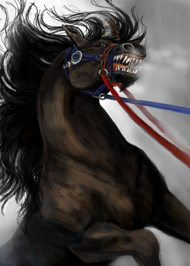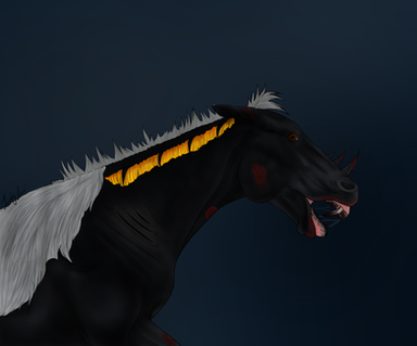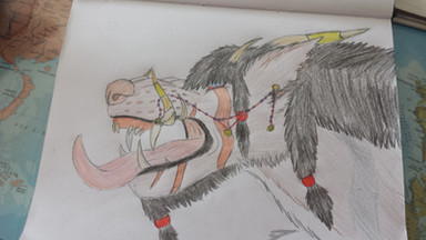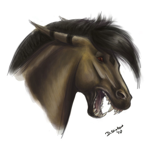 Kaiila's are equine-like shaped part feline creatures ridden by the masters/warriors of Gor, they have paws instead of hooves and fashion a spectacular set of sabreteeth & live off a diet of meat.