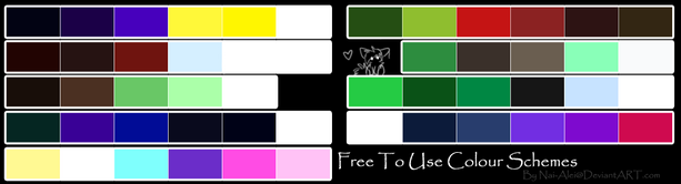 7 Color swatchesThese are combinations I personally feel good by, still I hope these will help you out when you're looking for colors!