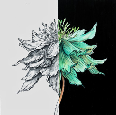 ItΒ΄s amazing how alive this drawing is despite of the subject. The colours just flow out of the page, I feel if I touched it, it would feel like velvet (the green petal) and at the same time like drying flowers... a beauty indeed. Absolutely it!