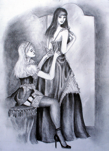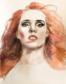 Onko tämä tehty vesiväreillä ja kynillä? Sinulta näköjään onnistuu upeasti värienkin käyttö. Tässä hiukset ovat erityisen vaikuttavat ja kuohkeat. Huulia olisi voinut työstää enemmän/toisenlaisilla väreillä, että ne näyttäisivät sopivan paremmin kasvoihin.