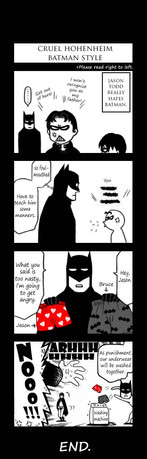 Huh, so there's a scene like that between Jason and Dick? LOL! gotta go look for it now. I do remember the issue where Tim and Dick are training how to ride train rooftops--blindfolded. Poor Tim was pissing his pants most of the time. lol...