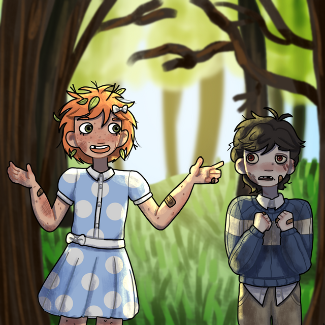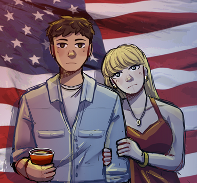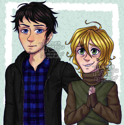 a slight redraw of the end of the f***ing world poster with my characters as a hypothetical poster for their showft. what actors I think could play them
