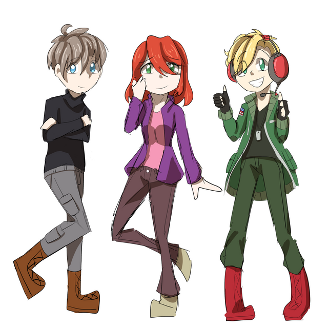 Some human designs for Saki, Kevin, and Ryo!I've been super into SynthesizerV lately and while I'm a little late, I really wanted to give my hand in giving a design to Kevin (middle). I have a very specific idea of what he looks like based off of his voice, and I hadn't seen any designs that I thought fit him the best, so I tried to put those ideas to paper. It's not totally accurate, but gives a general concept of the Shawn Mendes / Ed Sheeran guy with a guitar vibe I get from his voice.