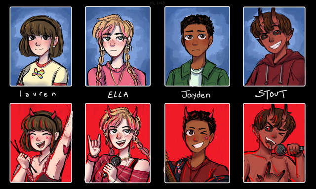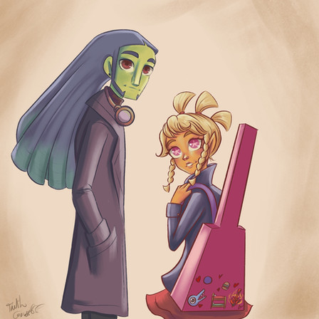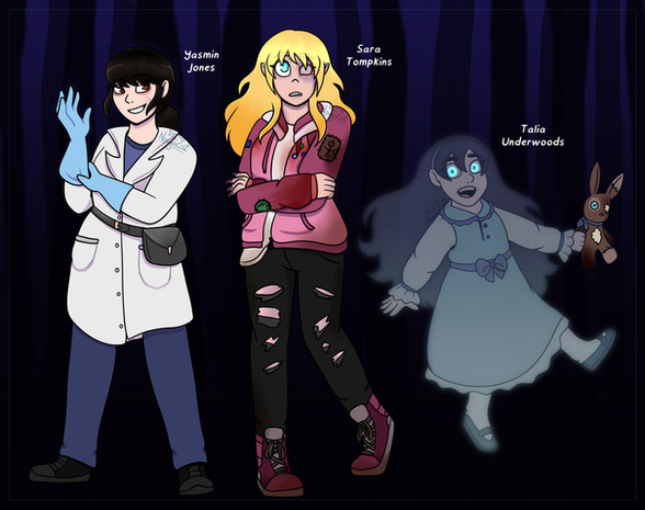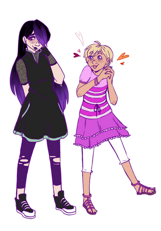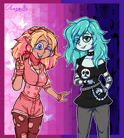 Some new OCs I've been designing lately. The zombie girl (Zoe) is a character I've been designing for a while, but I wanted a friend for her so I made Ven the vampire. Their world is just like earth but monsters like Ven and Zoe are also there, but the majority of people are humans.Some monsters like Ven prefer to pretend to be human, while others like Zoe are immediately recognizable as monsters. Though mostly the story is a comedy about these two's daily lives with a ton of references and jokes about classic monsters. I don't have many just for fun stories, so I've been having a lot of fun with them.