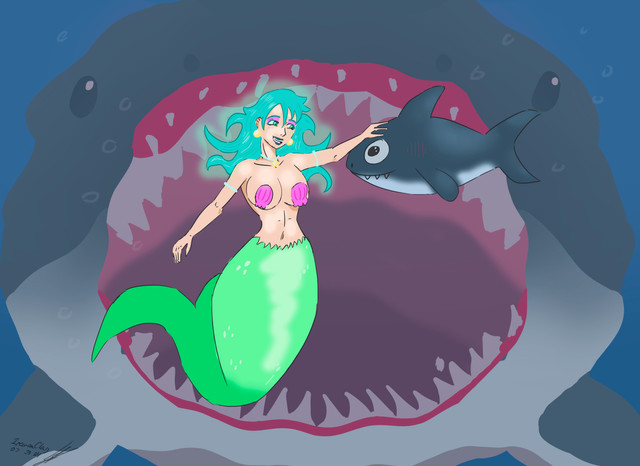 Commission forSharkmaid is having an unfortunate turn in the battle with a smaller mermaid
