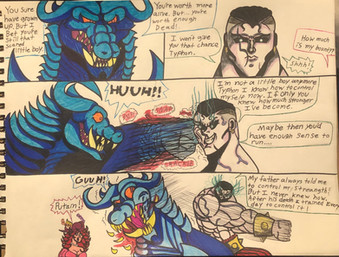 On his way through heaven he would look for the best place to rest in peace, but what he did not expect is that, by fate and by magic, 4 people would appear to him in the middle of his journey, but they were not or anyone, it was his family... the family he had lostamong these people was his adoptive grandfather, Anguirus Showa; there was also a muscular older woman with white hair with colored locks, she was his adoptive mother, Borea, a Titan who took care of the borel aurora in her universe; the great samurai in the back, was his teacher and second great alpha of the kaijus, Gojira (the one from the Heisei era) a godzilla whom Senkan had a lot of respect for; Lastly, and the one that surprised him the most was Hana herself, the bearer of Mothra's powers, Meido's sister, Meishu's ex-girlfriend and his former crush. I was in front of him with a different outfit