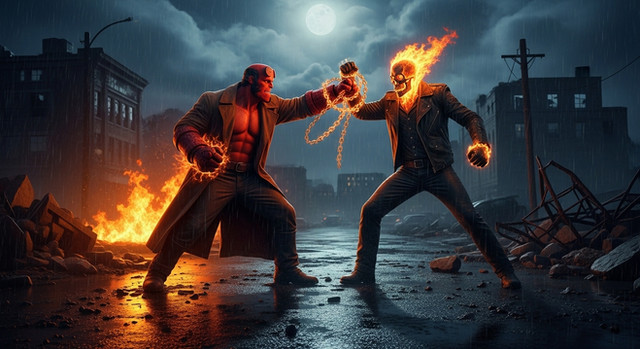 #marvelcomics #deathbattle #fanart #wallpaper #battle #badass #avengers #comics #crossover #darkhorsecomics #fight #ghost #hell #hellboy #infernal #marvel #mashup #penance #rider #stare #wallpapers #whatif #marvelcinematicuniverse #fire #vs #mythoscomics
