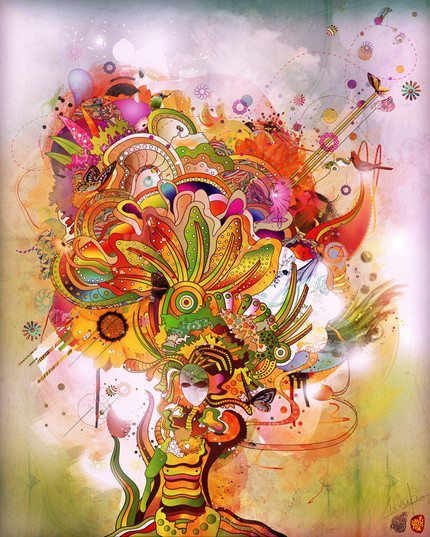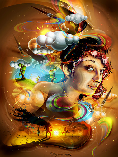 Funny but it reminds me of Photoshop CS for the colors and her hair like feathers