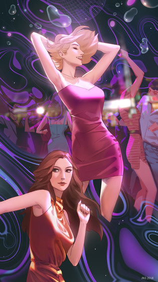 It's like one of those movie scenes that makes you think "why don't I go out more often" it looks like so much fun you forget that when you really go out it just a bunch of strangers trying to rub on you ^.^ The lighting fits the scene beautifully