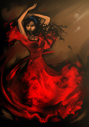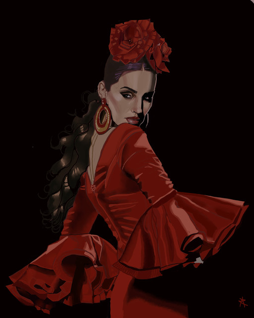 One thing, and this has nothing to do with your skills because this piece is flawless. I think she looks so concentrated and I think her expression would look even better when her expression was like totally giving in to the dance and the flamenco passion instead of thinking of how to do her next step! I hope my english was clear enough to explain it well...