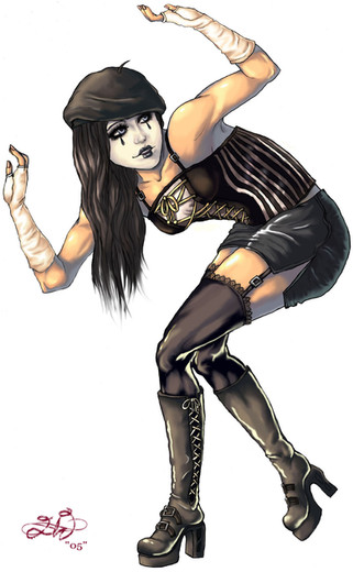 I like all the 'extra' lines, I wouldn't have thought that would work so well. Makes her look dynamic and sketchy (I mean that in a good way!) Actually when I first saw this I thought of Harley Quinn which is good 'cause Harley rocks!
