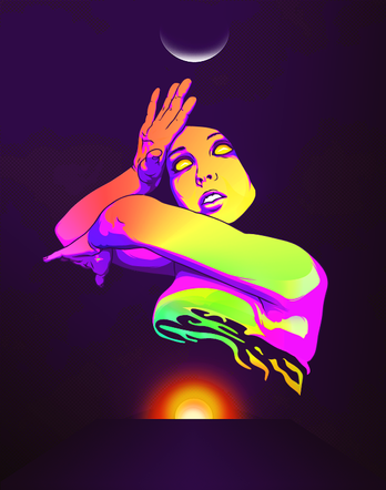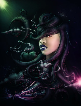 Lindo, parece que vΓ‘rias luzes afetam o corpo dela de formas diferentes; o cabelo dela lembra fumaΓ§a de cigarro, ficou muito bonito e as cores sΓ£o maravilhosas.