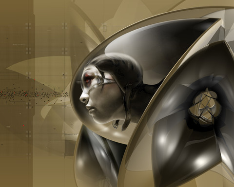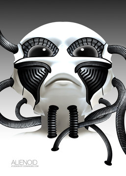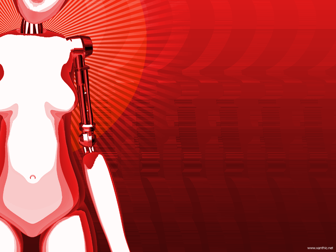I love this, it's so perfect and clean and superhuman... Has sort of a divine presence with a simple, almost childish freedom of design above its complex circuitry and unfathomable technology. The red and white coloration reminds me of a medical or hospital machine, but its shape implies a power to mold and destroy in contrast to those ties to healing. I have it as my desktop background if you don't mind, I like it as that because when I go to shut down the red colors fade to gray when the computer does that color fade so it looks like it's shutting down too.